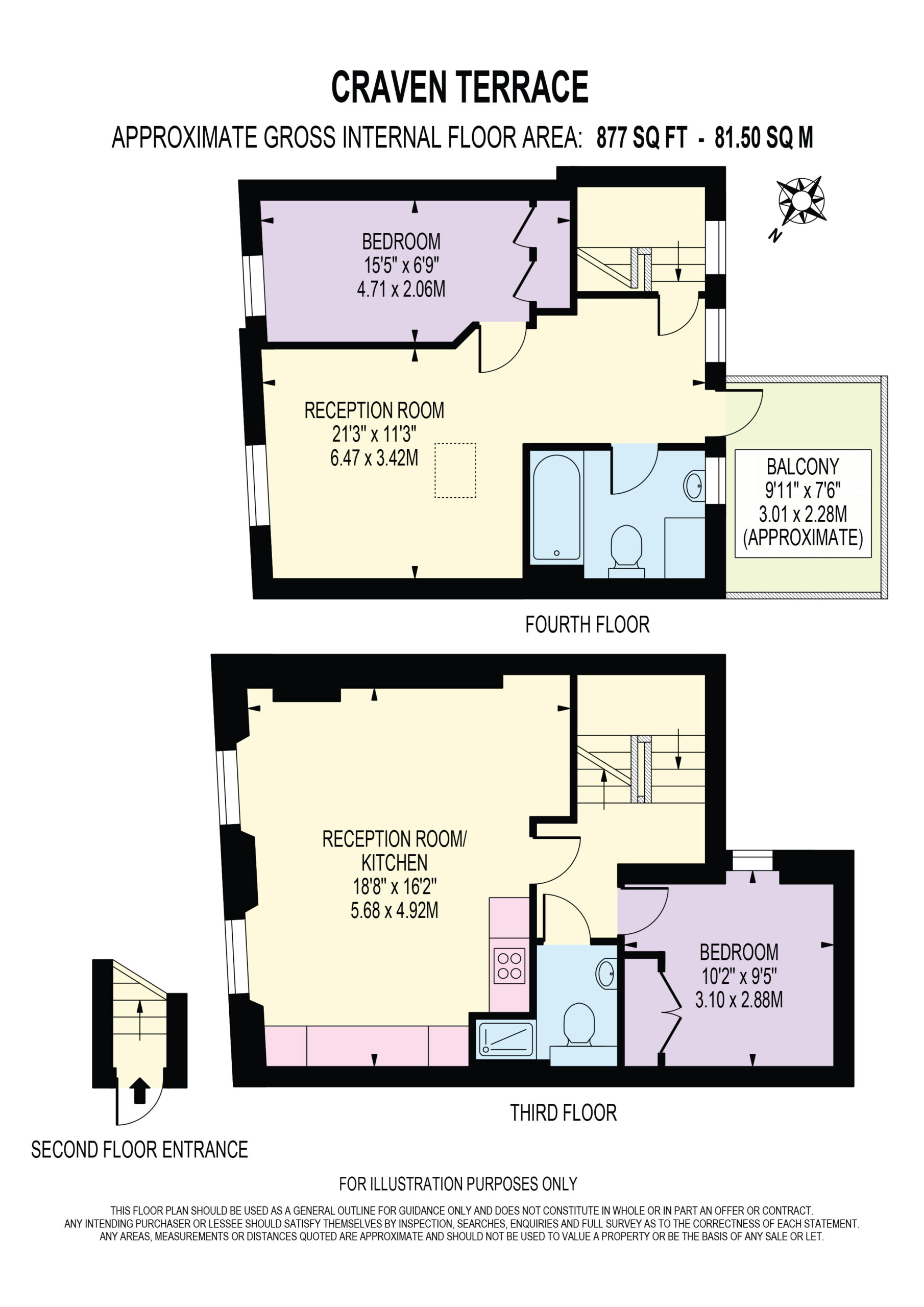 This bright and spacious split-level apartment occupies the third and fourth floor of this period conversion and mesaures in excess of 870 square feet. The property comprises two large reception rooms, a large open plan kitchen diner as well as two double bedrooms, two bathrooms and a large private terrace.