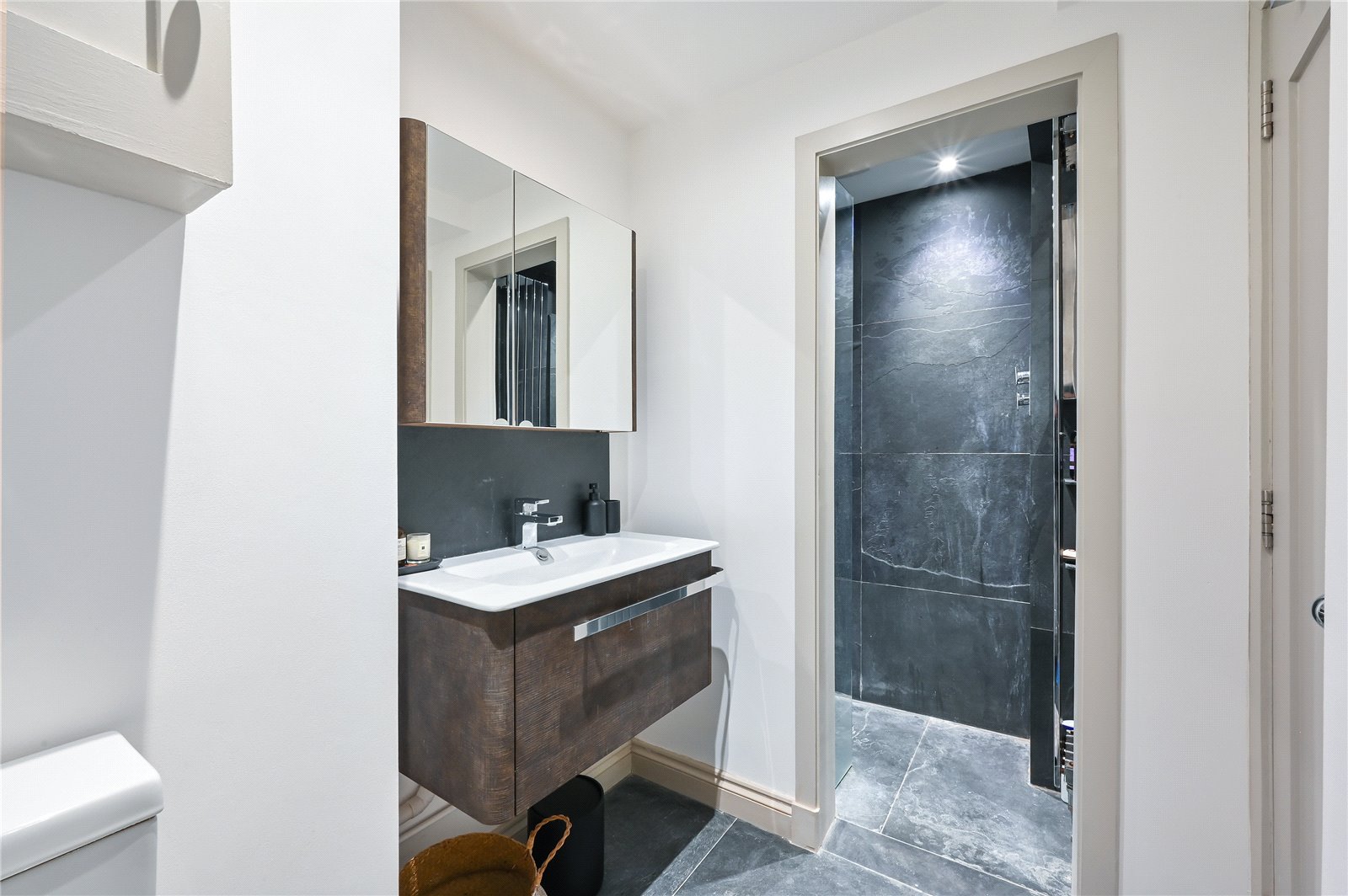 This immaculate flat is in excellent condition throughout and has been lovingly maintained by the current owners. Entering through your own front door, the spacious hallway leads through to the open plan kitchen and living room and guest bathroom. At the front of the property is the principal bedroom with plenty of storage space on offer. Walking through to the rear of the property is a secondary living space, with a plethora of light coming from the skyline panel that electrically opens. This leads through to the second bedroom with en-suite shower room.
