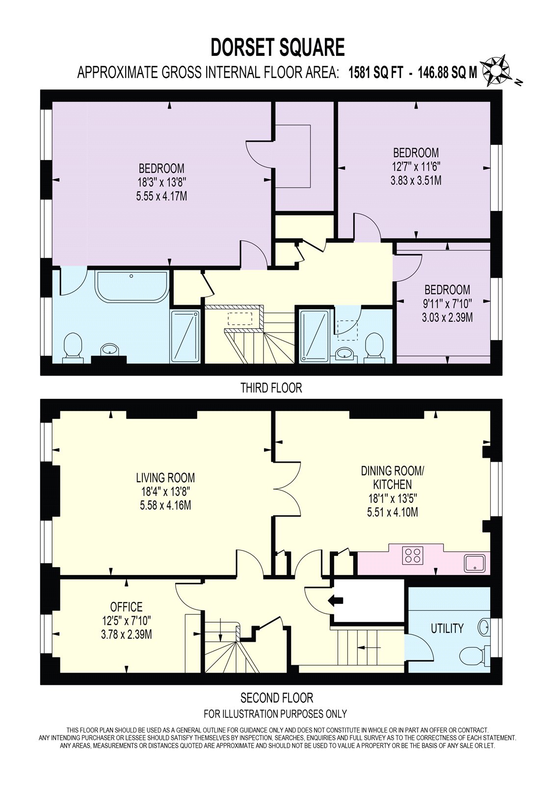 The apartment is accessed from the original Portland stone stairs. Upon entry on the second floor, there is a bright reception Room, south facing and overlooking the sylvan garden of Dorset square. The reception room is flooded with natural light and also benefits from dual aspect. The grand reception room is linked to a good-sized eat in kitchen/dining-room with bi-folding double doors to create a separation if required. In addition, there is a large study with original chimneypiece (or additional Bedroom) overlooking the garden square. Also, on the second floor is a separate guest cloakroom and utility Room, with additional storage.