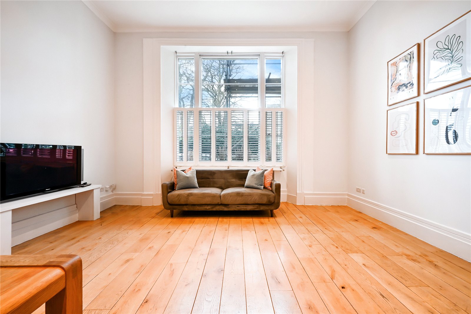 The apartment contains a spacious entrance hall, modern bathroom, large double bedroom with ample storage and a voluminous reception room with open plan kitchen, incredible high ceilings and a large window offering views over the Square. Neutrally decorated throughout and with the added benefit of wooden floors.