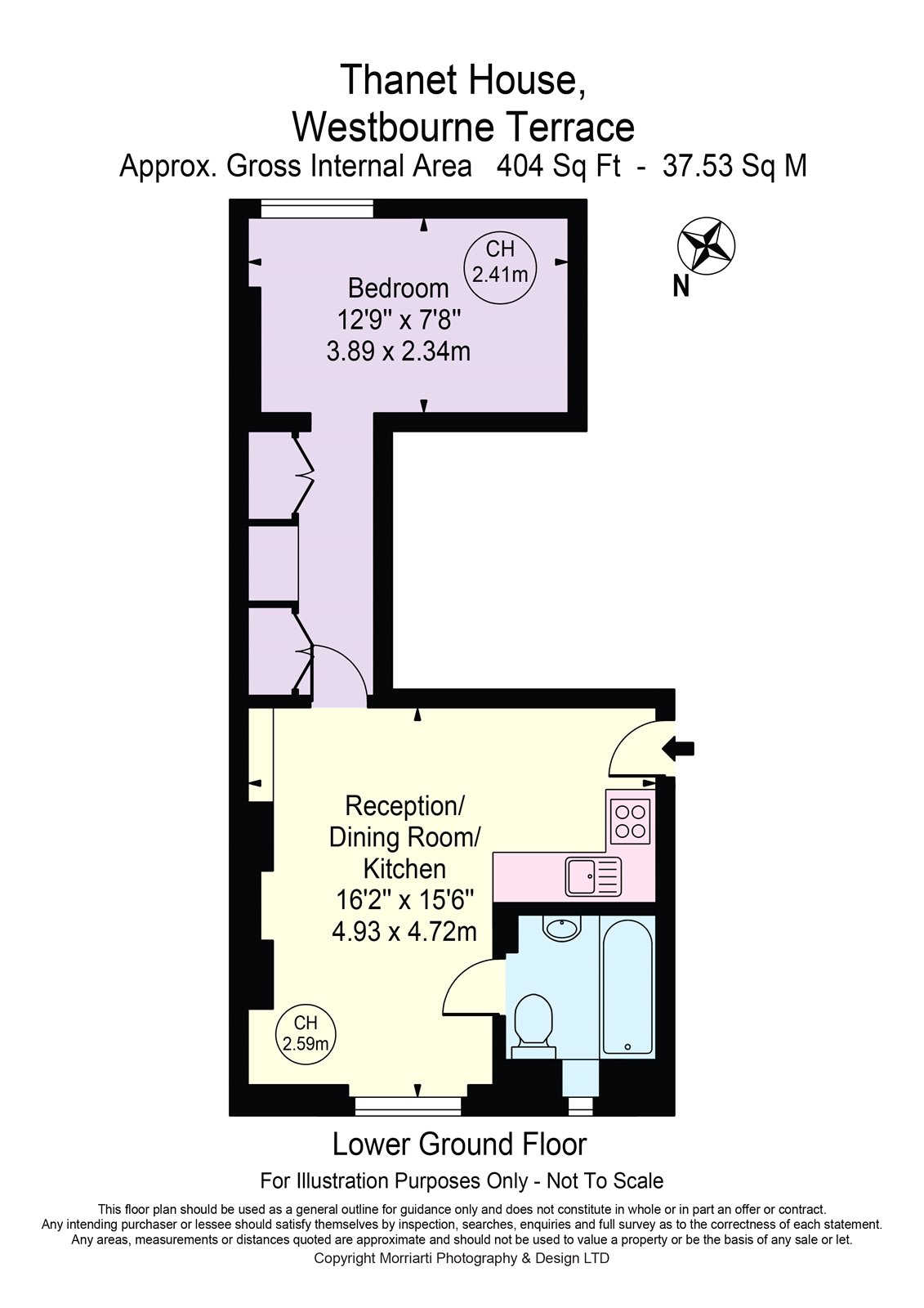 Set in a white stucco building, this one-bedroom flat is arranged over the lower ground floor; and offers wooden floors throughout with an open plan kitchen reception room. The large double bedroom has an abundance of storage.