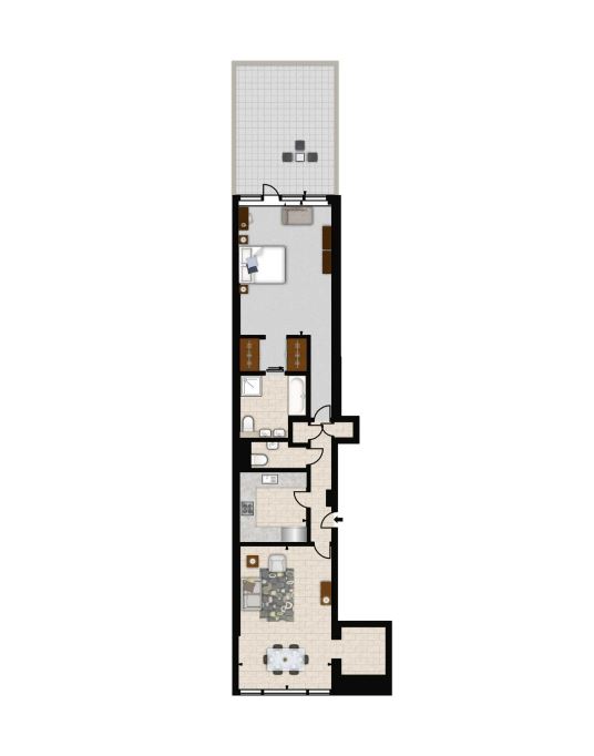 The apartment is furnished in a contemporary style throughout and benefits from air conditioning and on site porter.