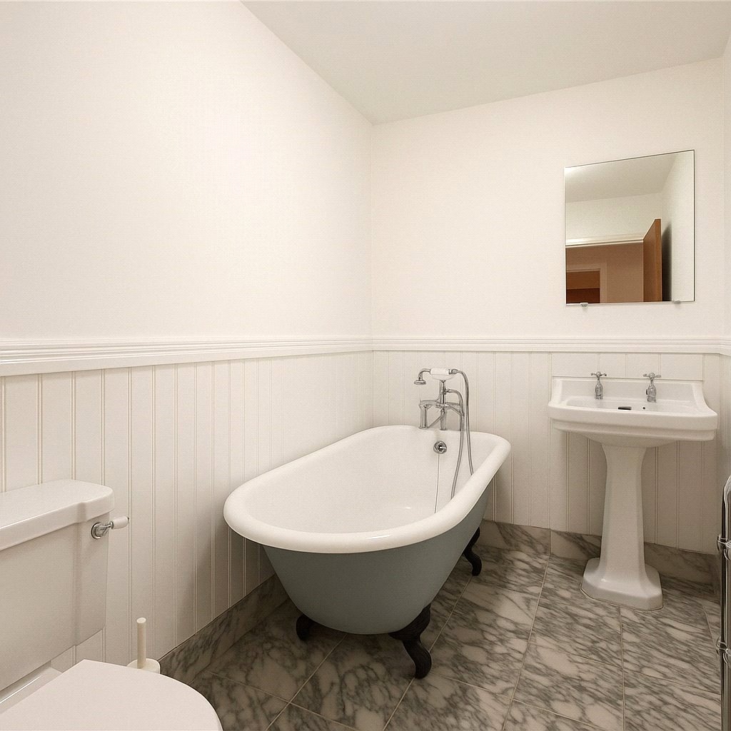 The flat features a generous reception room ideal for entertaining, two well-sized bedrooms, two modern bathrooms, a separate utility room, and direct access to a private garden space.
