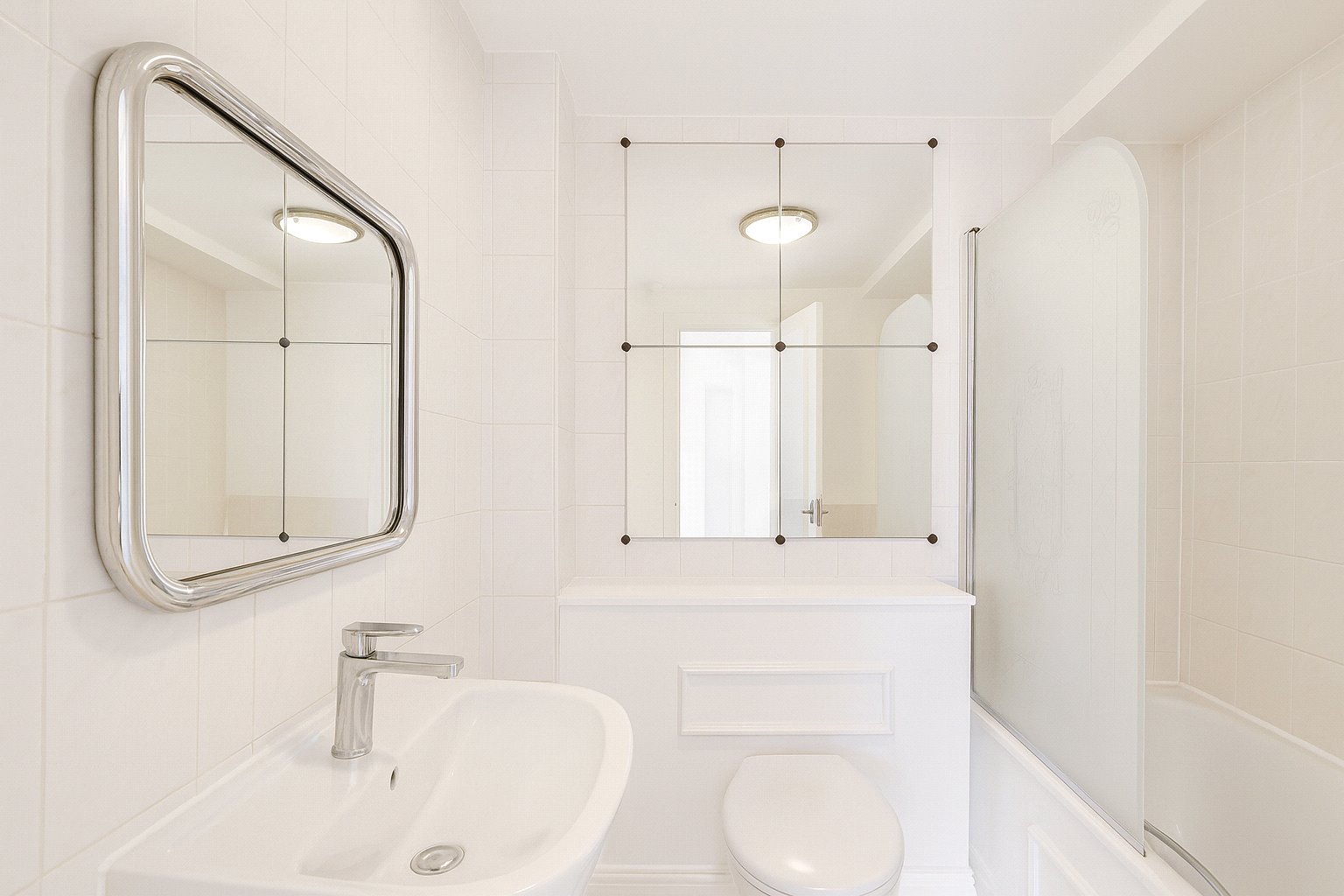The accommodation includes a bright reception room, separate fitted kitchen, spacious double bedroom, and a generously sized bathroom. The flat is situated in Nell Gwynn House, a landmark Art Deco building with 24-hour concierge and excellent security.
