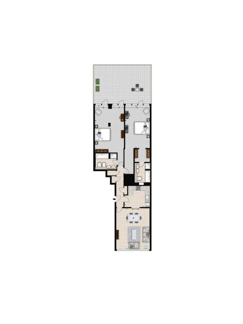 The apartment comprises two double bedrooms, two bathrooms, reception room , separate kitchen, large TERRACE , lift, porter and benefits from air conditioning.