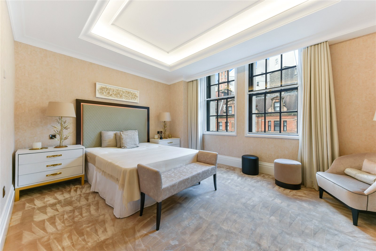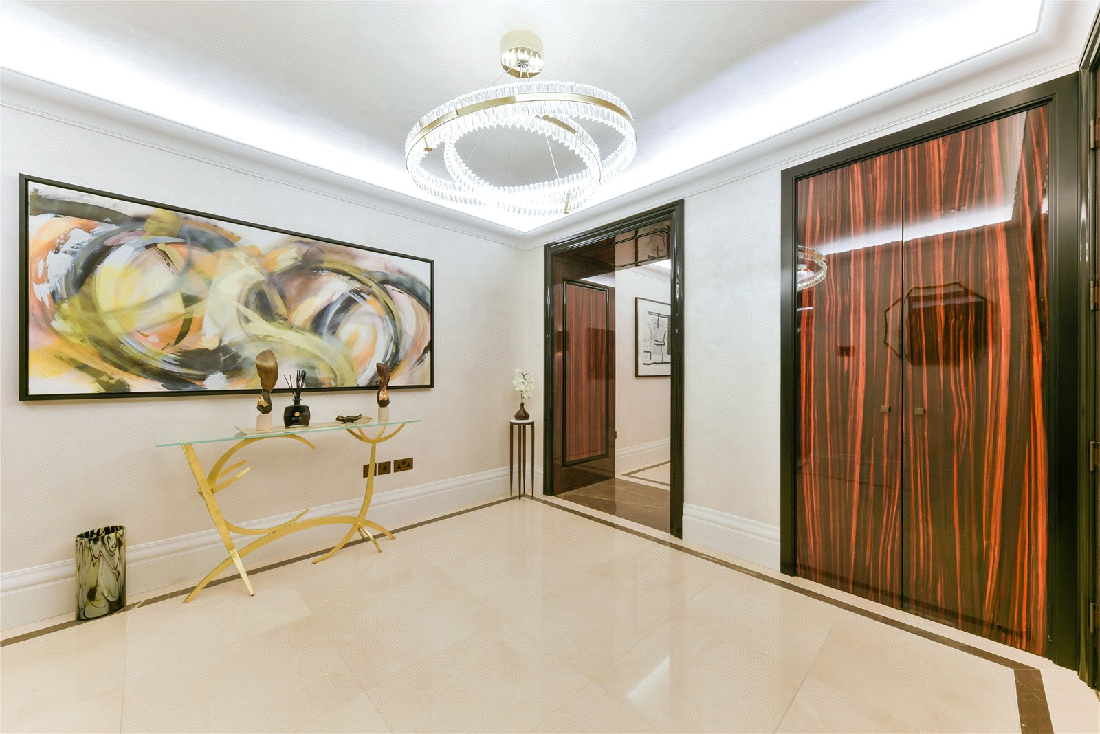 This beautifully designed apartment spans just under 3,000 sq ft and occupies the third floor of the building, with lift access for effortless living. A grand and welcoming entrance hallway leads through to a bright and expansive reception room and separate dining room, ideal for both entertaining and quiet relaxation. The home offers three luxurious bedroom suites, each with its own modern en-suite bathroom finished to an exceptional standard, complemented further by a guest W/C. The interiors feature exquisite detailing throughout, including ebonised Macassar doors polished to a mirror finish, bespoke joinery, and fumed oak flooring transitioning to deep-pile silk carpet in the bedrooms. A chef’s kitchen, fully fitted with top-end appliances, is supported by a separate utility room, and the residence benefits from a high-specification home-automation system controlling lighting, heating, audio, and blinds at the touch of a button.